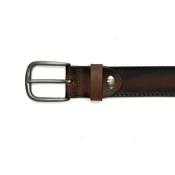 Este cinturón combina la fuerza del Marrón con la energía del tostado para convertirse en tu mejor aliado diario. Fabricado en piel serraje con detalles textiles, su diseño es una declaración de carácter y estilo. La costura en contraste y el doble pespunte aportan una personalidad única, mientras que la hebilla metálica envejecida aporta el equilibrio perfecto entre lo clásico y lo moderno.