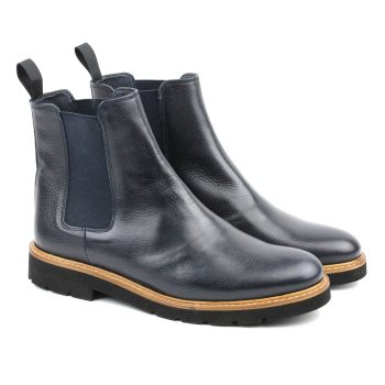 Un botín estilo chelsea en piel vacuno colo azul. Incorporan Tecnología Segarra.