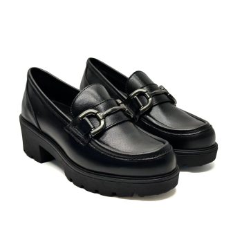 Estos mocasines negros de Segarra ofrecen un toque clásico renovado con una suela robusta que añade altura y carácter. Su diseño elegante, adornado con una hebilla metálica en el empeine, fusiona el estilo tradicional con una estética moderna y atrevida. Ideales para quienes buscan comodidad y estilo en su día a día, estos mocasines son perfectos para complementar desde atuendos casuales hasta looks más formales, brindando versatilidad y un toque de sofisticación a cualquier conjunto.