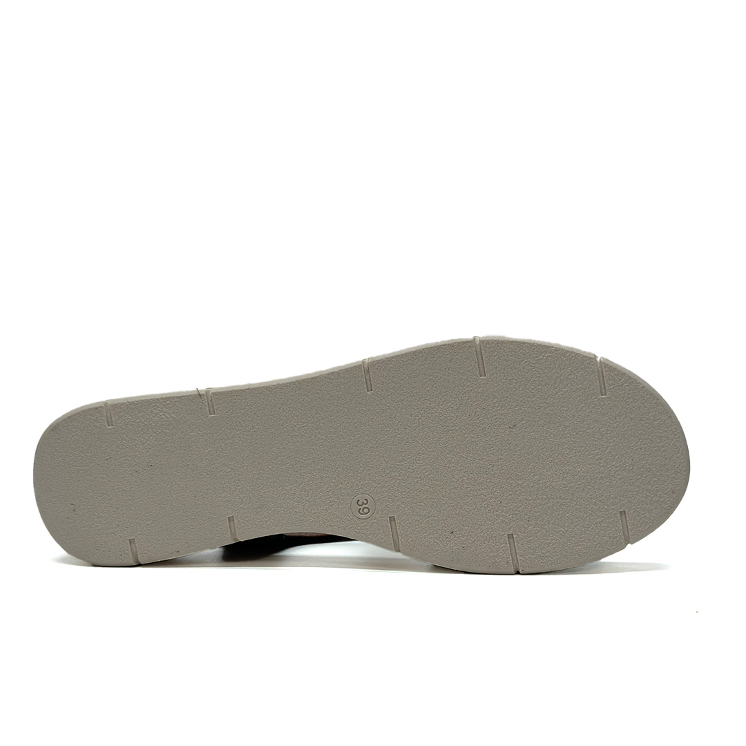 El corte envolvente abraza el pie con firmeza, proporcionando estabilidad y frescura, ideal para climas cálidos. Su plantilla acolchada y la base ligeramente elevada ofrecen una pisada cómoda con un toque extra de altura.