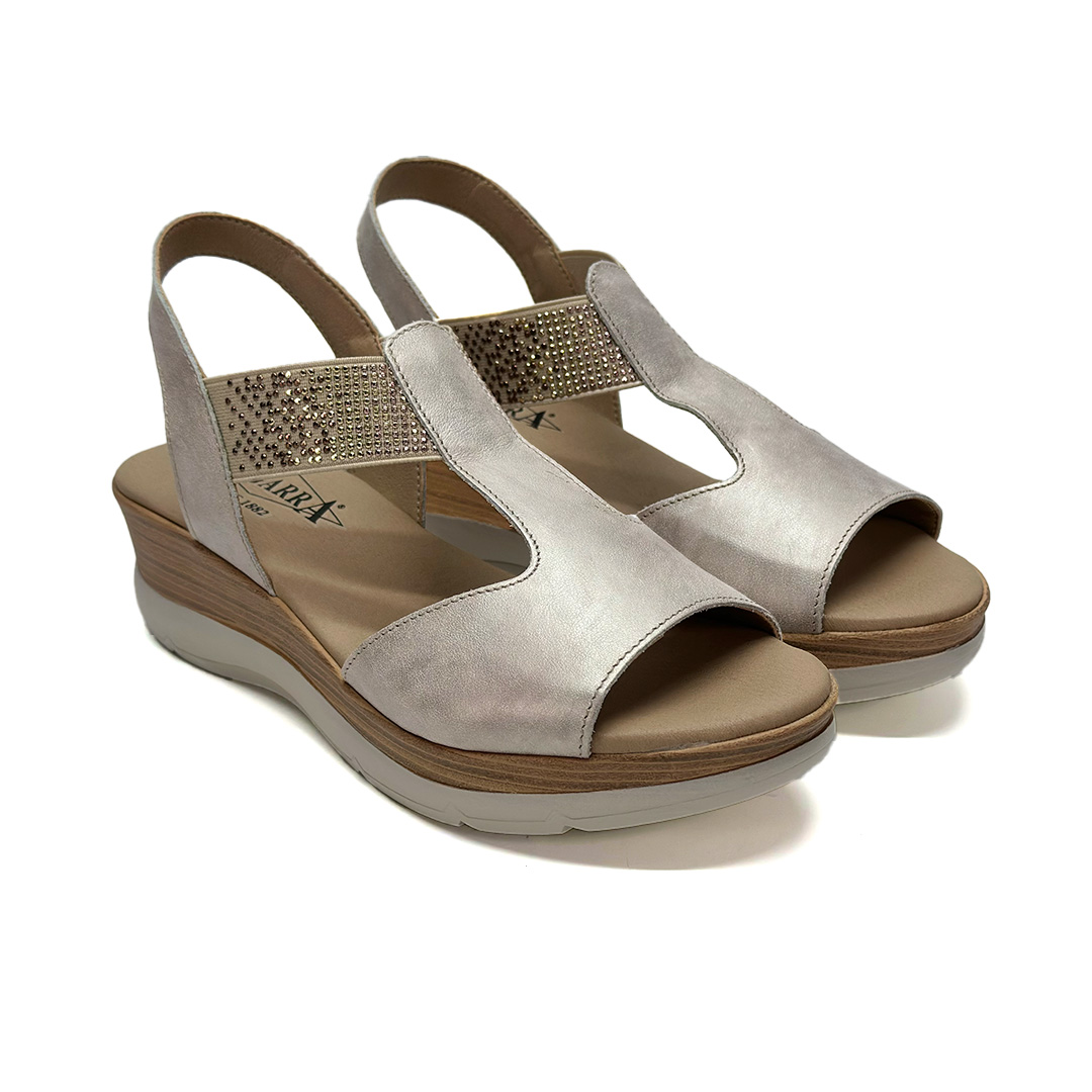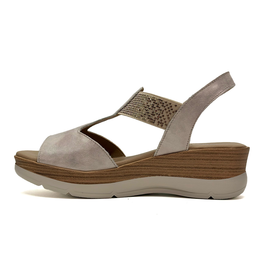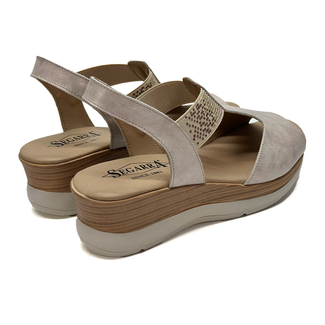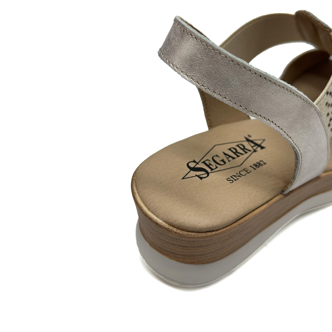 Sandalia de cuña para mujer Segarra 9072 Champán – Brillo discreto y confort que estiliza