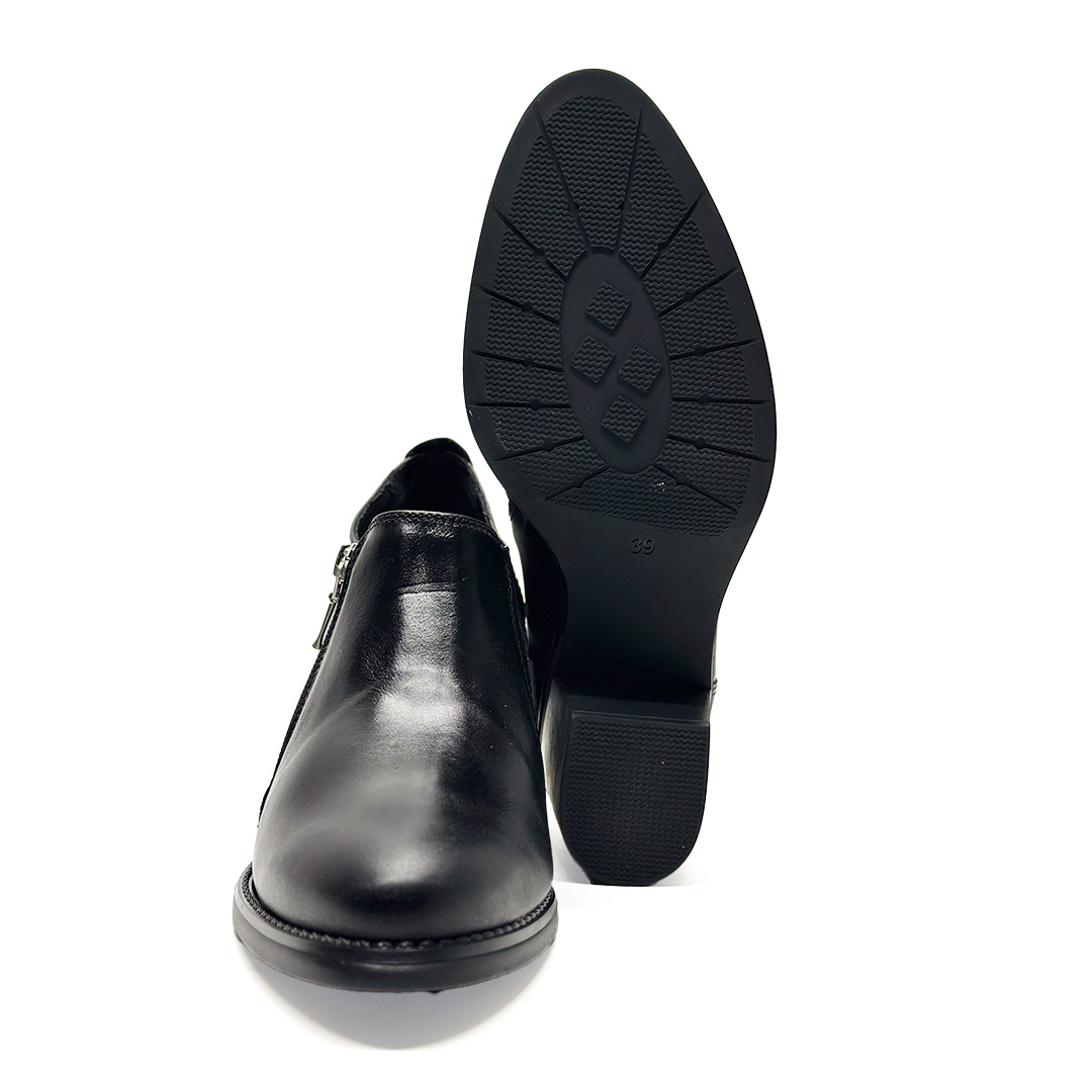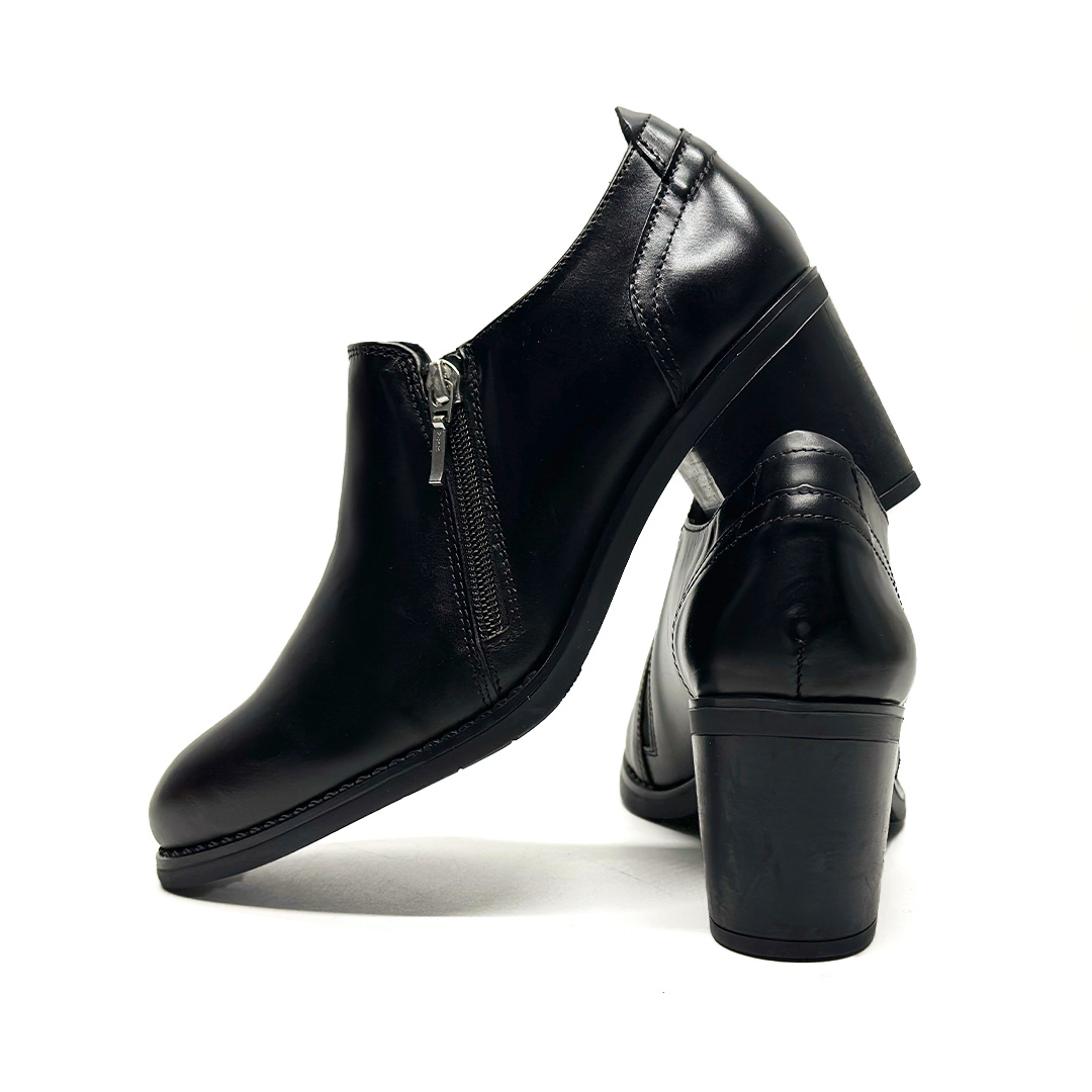 Fabricado en España con piel natural de alta calidad, este botín ofrece un equilibrio perfecto entre estética y funcionalidad. La cremallera lateral facilita el calce, mientras que el interior forrado y la plantilla acolchada garantizan bienestar durante horas. Su suela antideslizante y el tacón estable proporcionan seguridad y confianza al caminar.