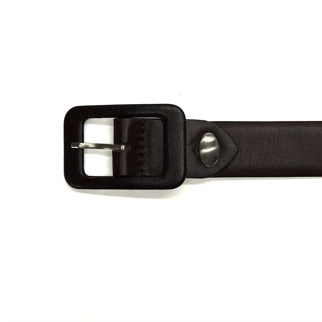 Cinturón de piel en color marrón oscuro, con hebilla forrada a juego que aporta un toque sofisticado y original. El diseño minimalista lo convierte en un básico atemporal para elevar cualquier look. Ideal para combinar con vaqueros o vestidos entallados. Si buscas un cinturón versátil y con personalidad, este es para ti.