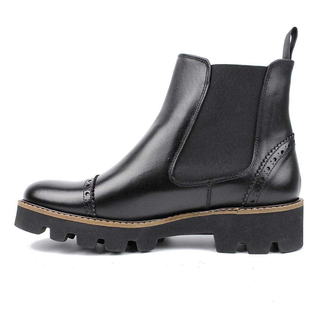 El botín MILEIA C en piel negra es la definición perfecta de equilibrio entre elegancia sobria y fuerza urbana. Su diseño tipo Chelsea se renueva con detalles brogue en puntera y talón, aportando un toque refinado sin perder contundencia. La suela gruesa dentada ofrece tracción y comodidad, ideal para los días de ritmo intenso. Combínalo con looks minimalistas o total black y deja que hable por ti. Un básico con actitud, hecho en España.