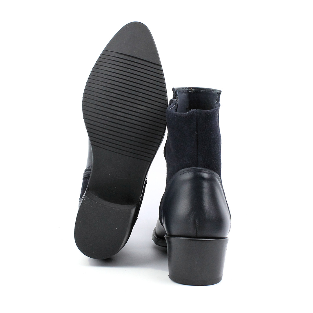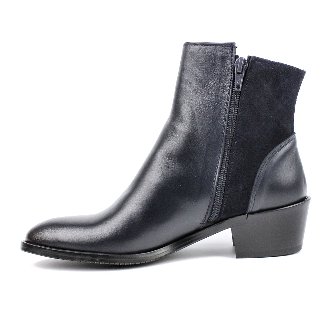 El botín NAOMI CS en tono marino es pura sofisticación discreta. Su diseño limpio, con puntera afinada y combinación de piel lisa con serraje, crea un juego de texturas sutil que realza cualquier look. El tacón medio estiliza sin renunciar a la comodidad, y la cremallera lateral garantiza practicidad en el día a día. Ideal para mujeres que apuestan por la sencillez con estilo, y buscan un calzado versátil que funcione tanto en la oficina como en una cena. Fabricado en España.